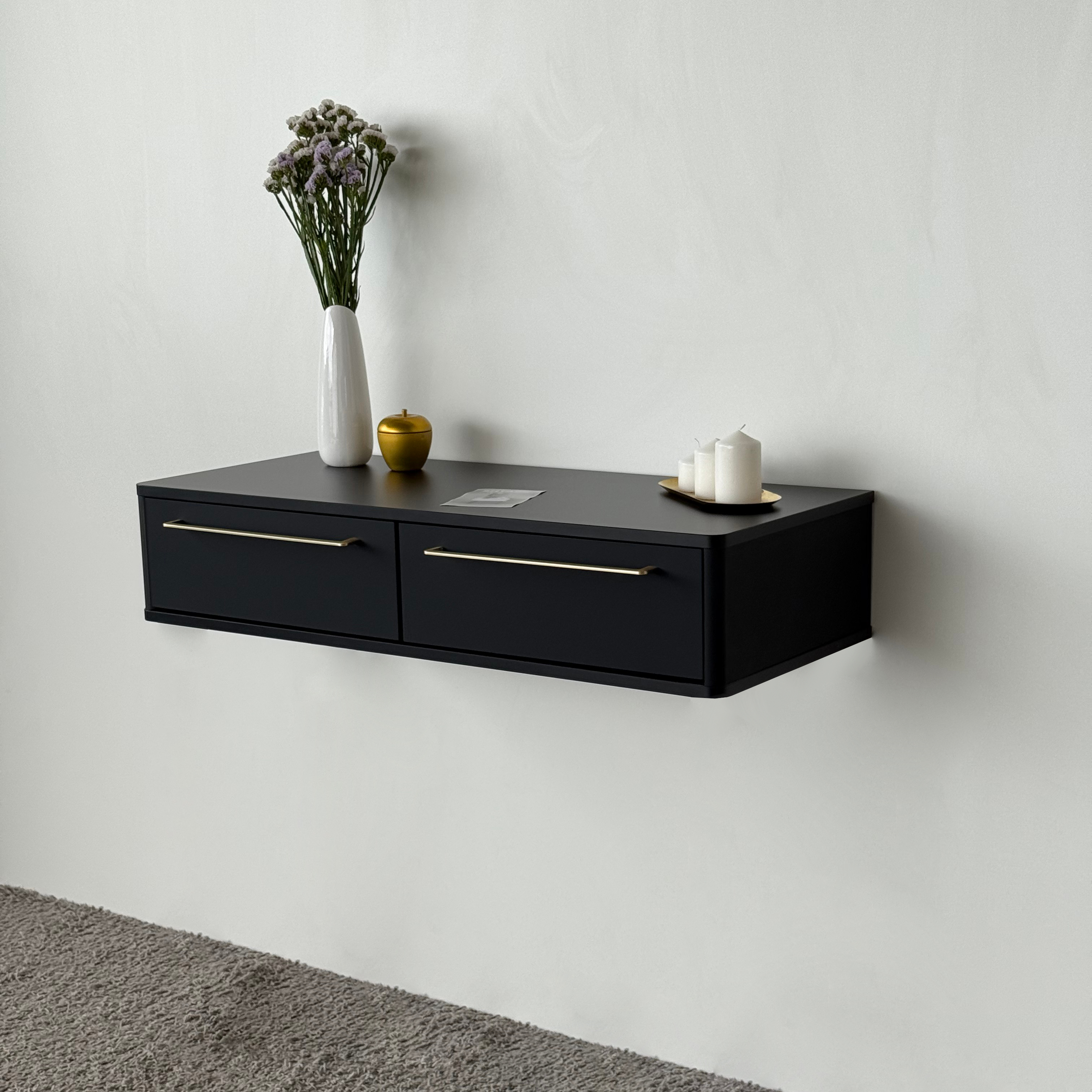 Подвесной туалетный столик консоль Royal 5210 эко (Черный-р.золото) – купить за 415.10 Br | SHTABE