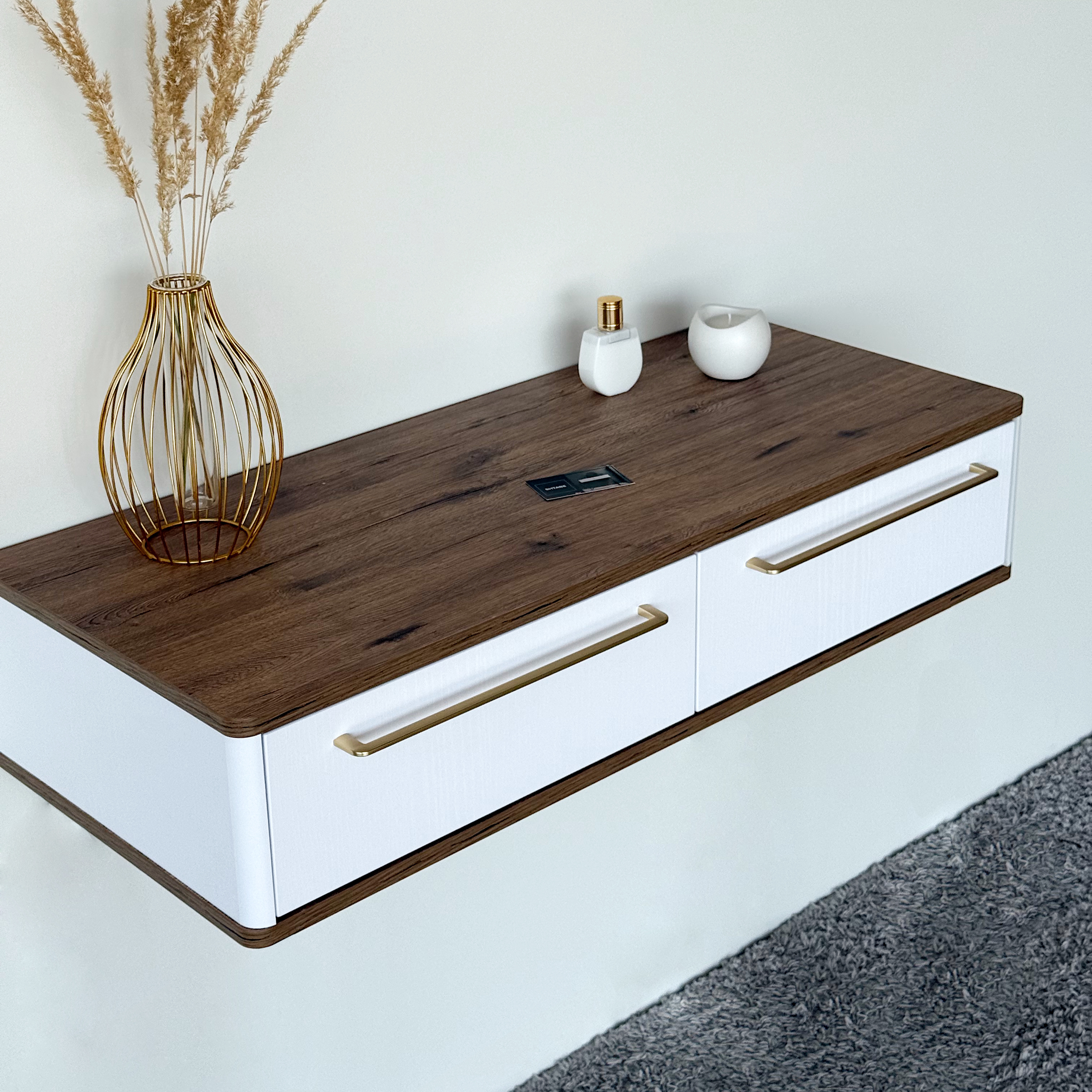 Подвесной туалетный столик консоль Royal 5210 эко (Дуб Веллингтон-р.золото) – купить за 415.10 Br | SHTABE
