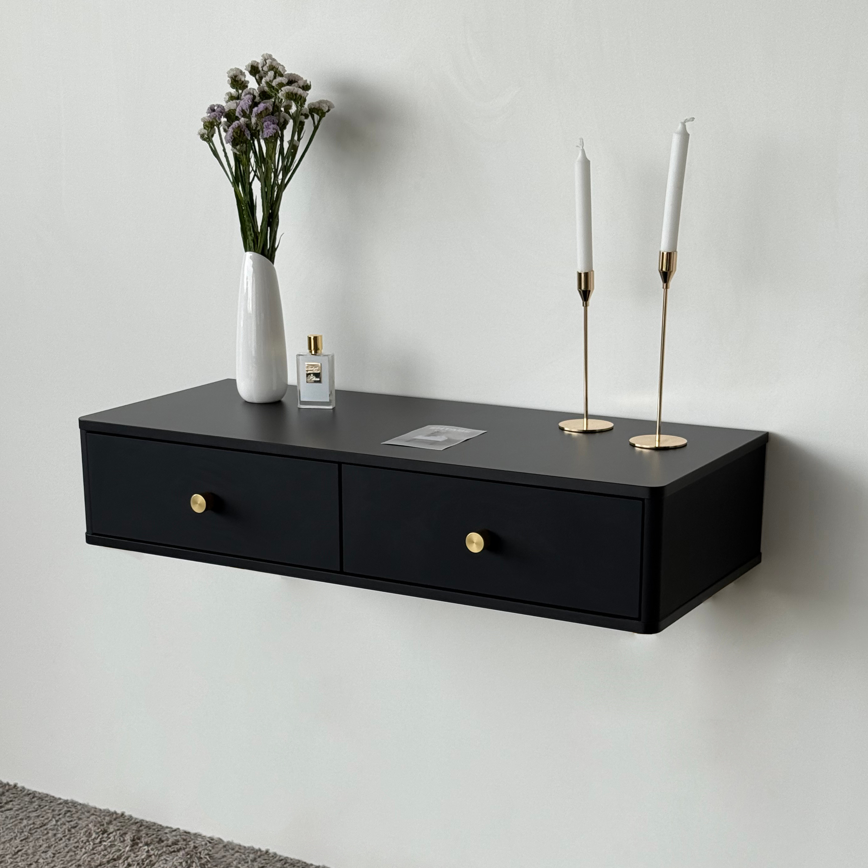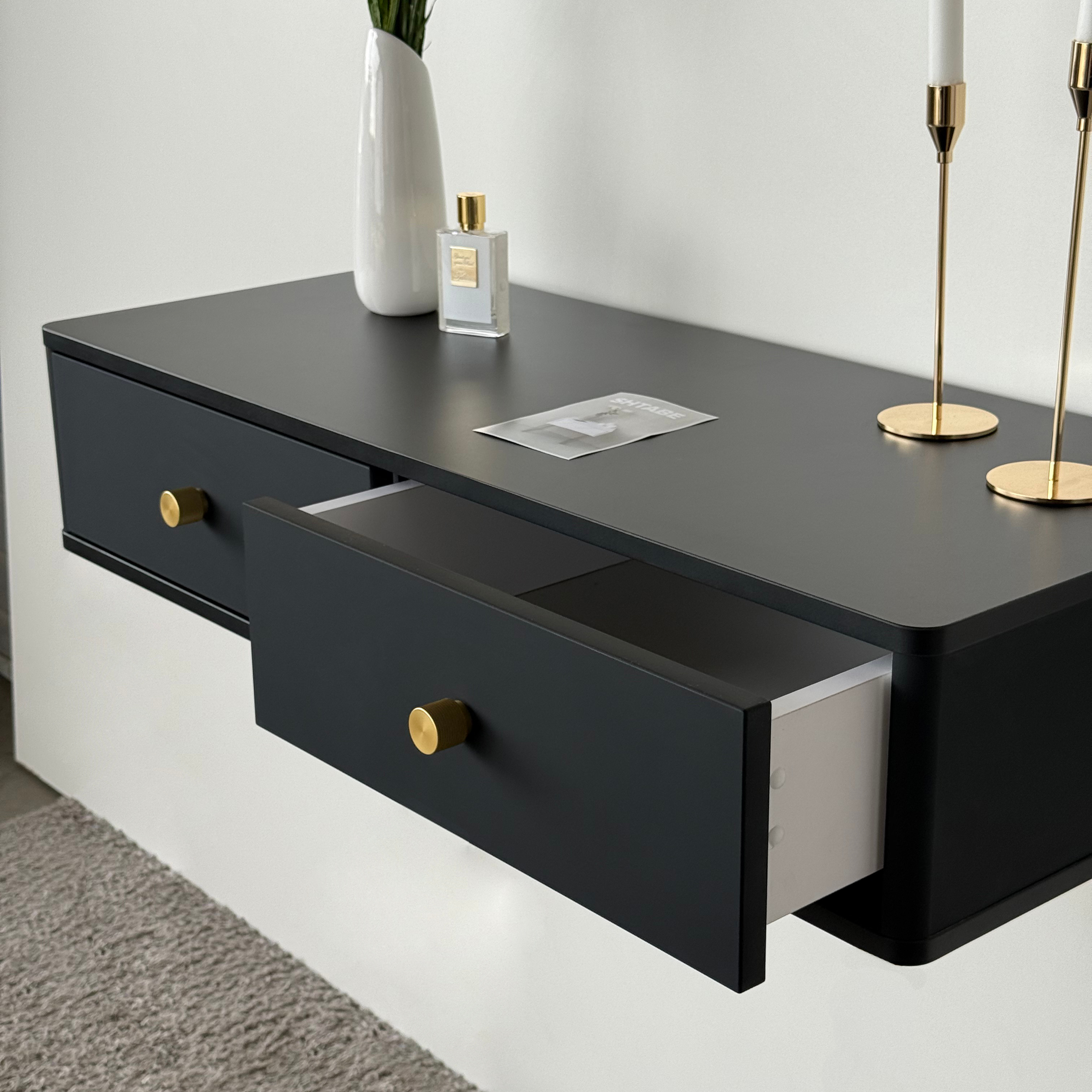 Подвесной туалетный столик консоль Royal 5310 эко (Черный-р.золото) – купить за 371.77 Br | SHTABE