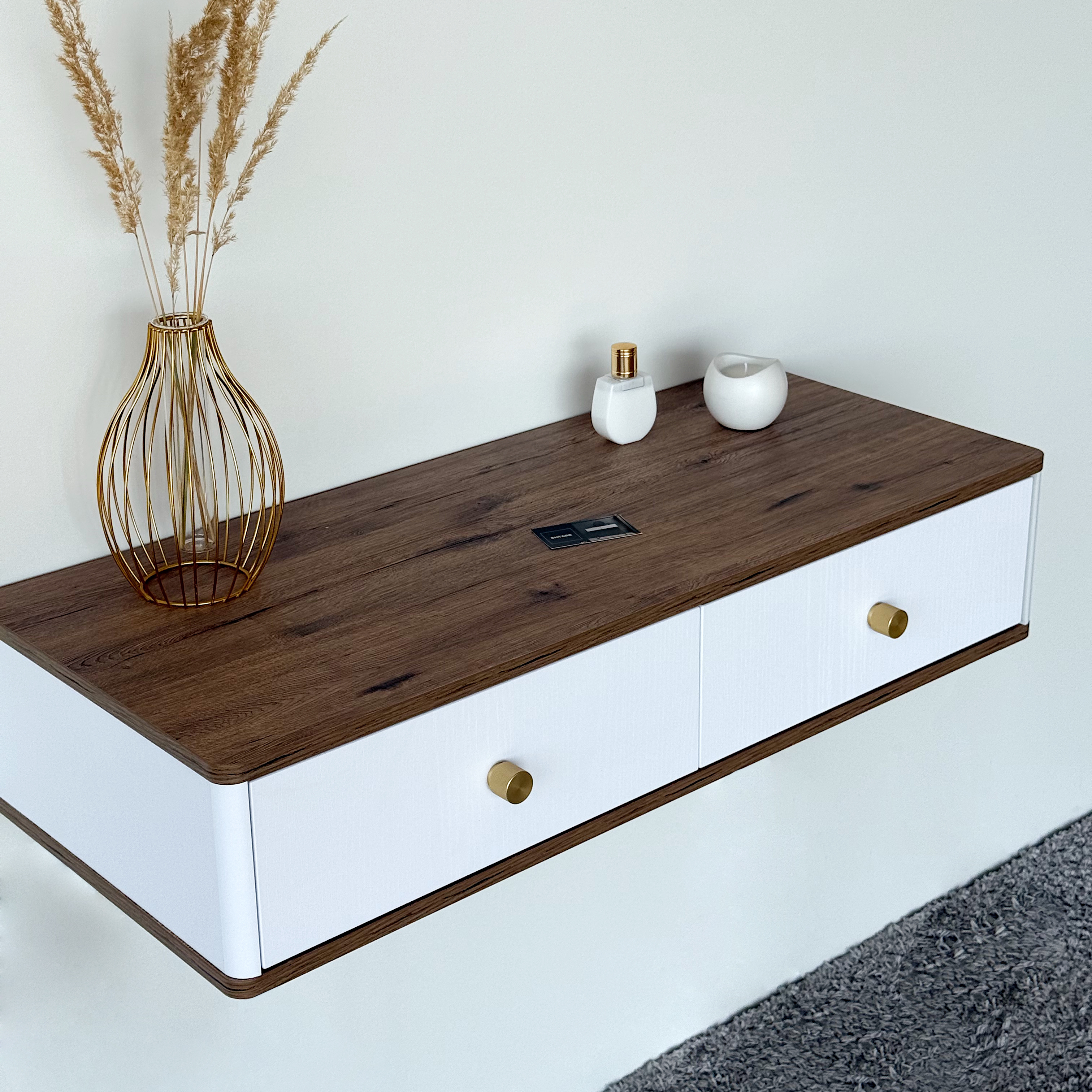 Подвесной туалетный столик консоль Royal 5310 эко (Дуб Веллингтон-р.золото) – купить за 371.77 Br | SHTABE