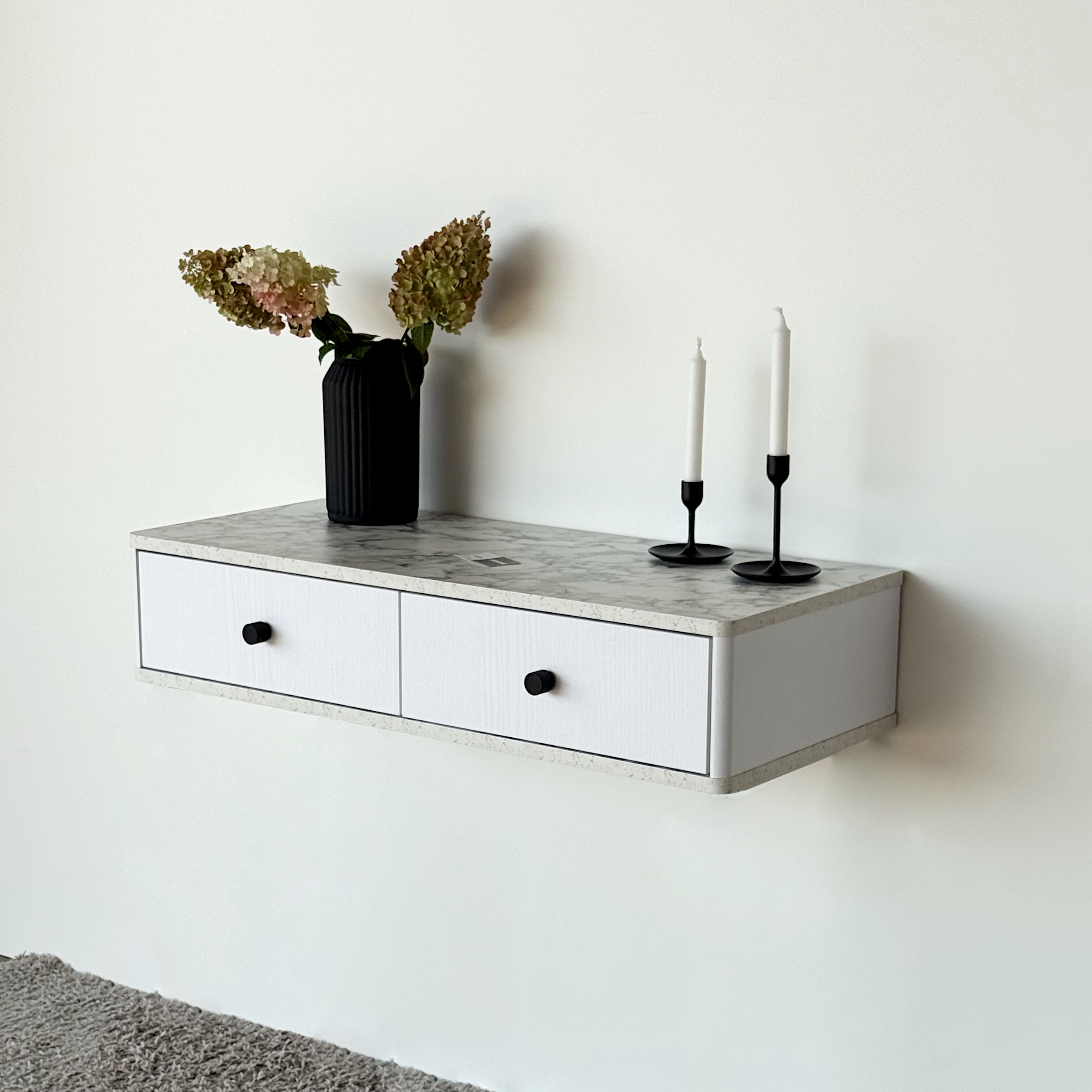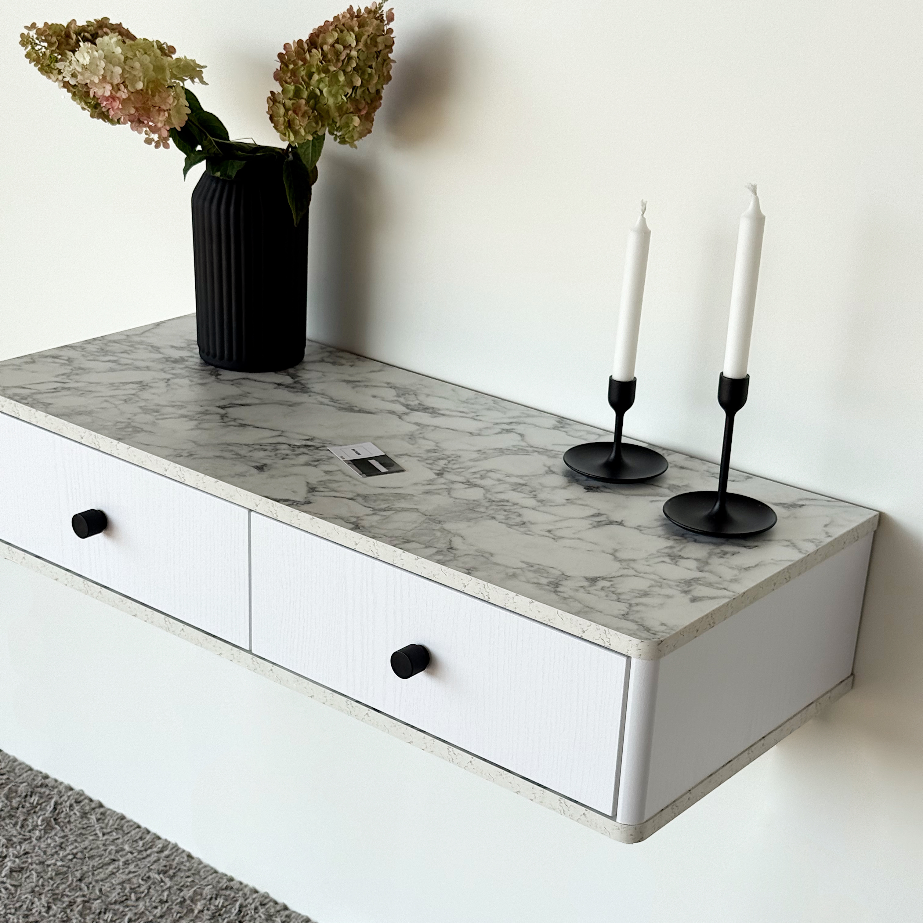 Подвесной туалетный столик консоль Royal 5310 эко (Мрамор Каррара-р.черная) – купить за 371.77 Br | SHTABE