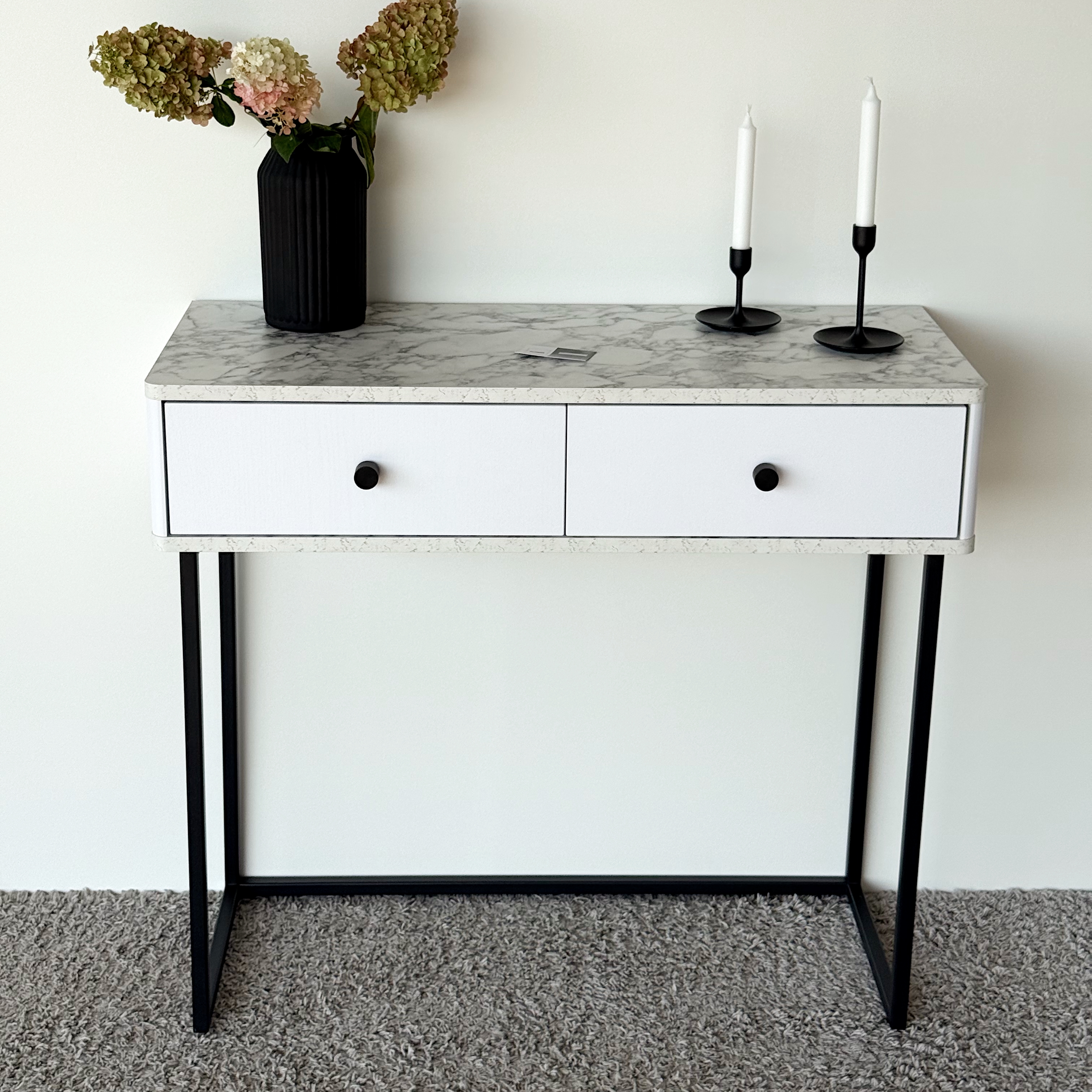 Туалетный столик консоль ROYAL 5311 эко (Мрамор Каррара-Черный-р.черная) – купить за 525.41 Br | SHTABE