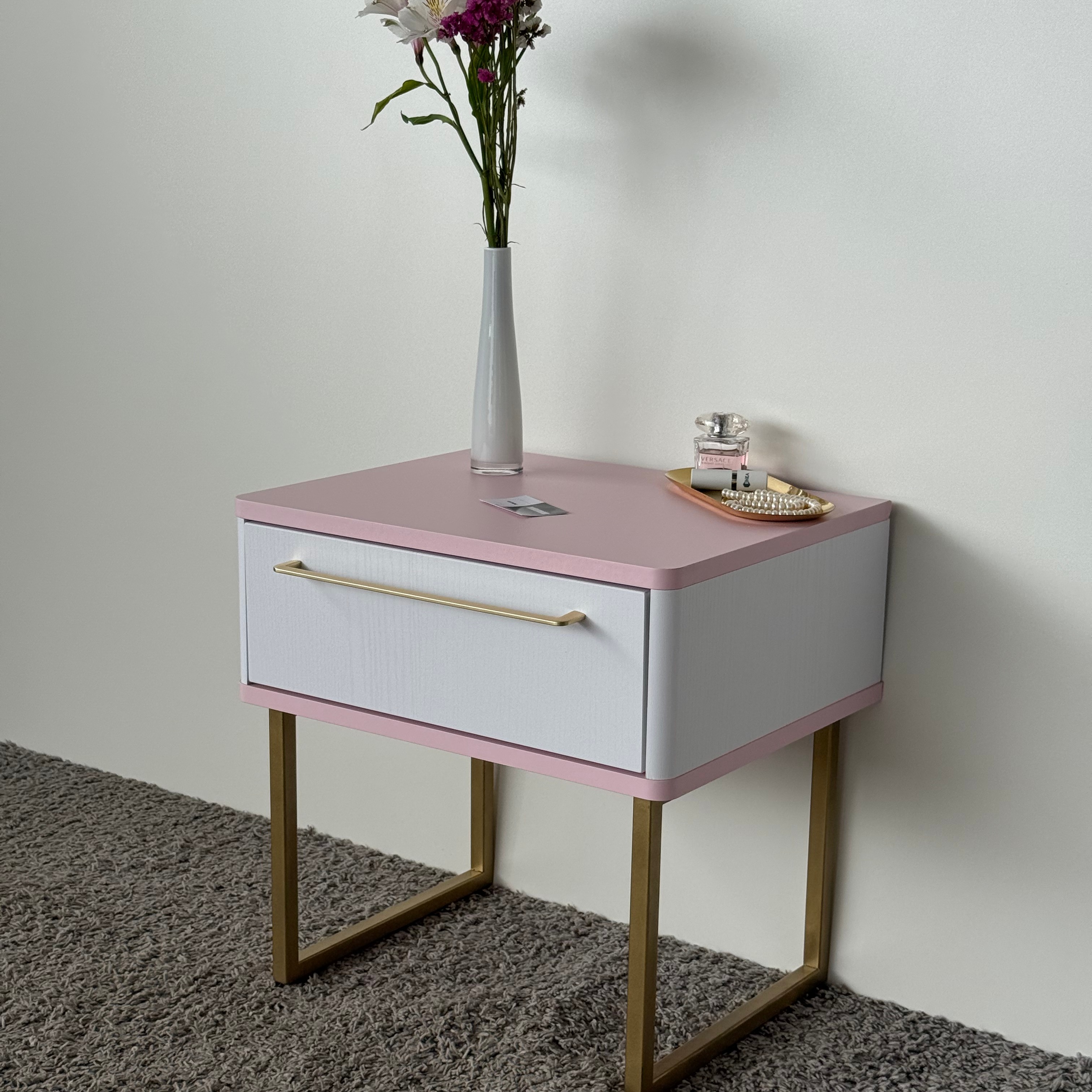 Тумба прикроватная на ножках ROYAL 5201 эко (Зефир-Золото-р.золото) – купить за 321.45 Br | SHTABE
