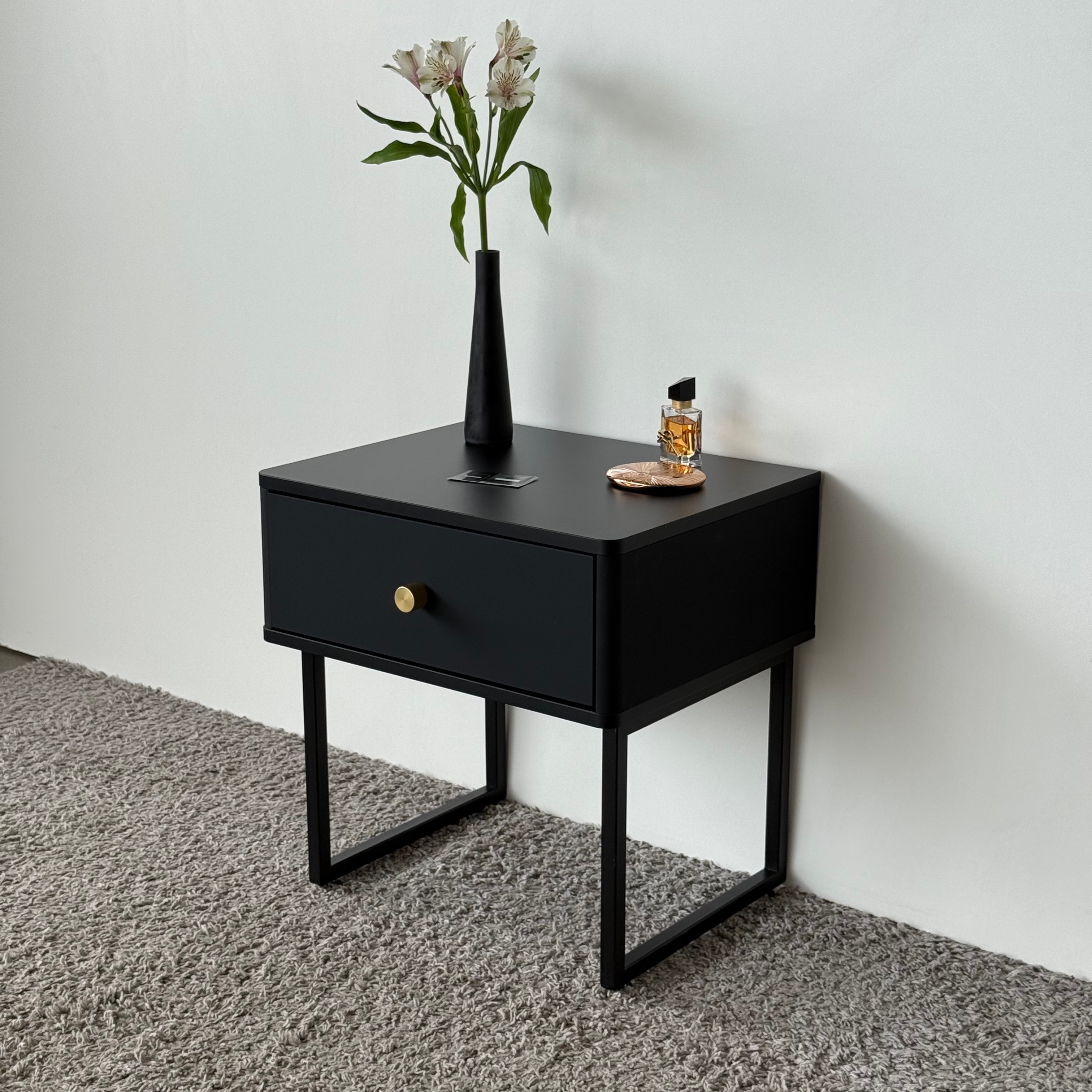 Тумба прикроватная на ножках ROYAL 5301 эко (Черный-Черный-р.золото) – купить за 292.54 Br | SHTABE