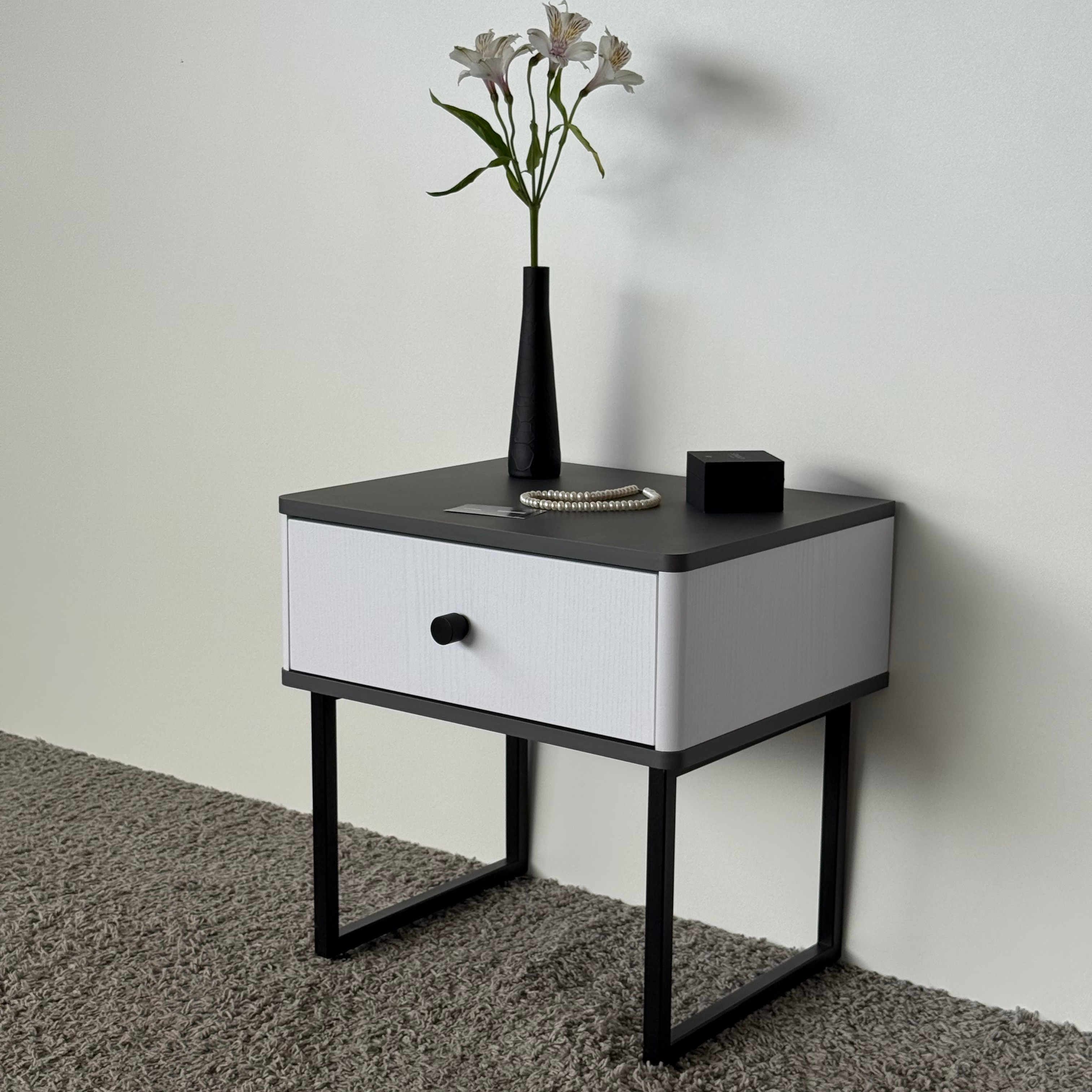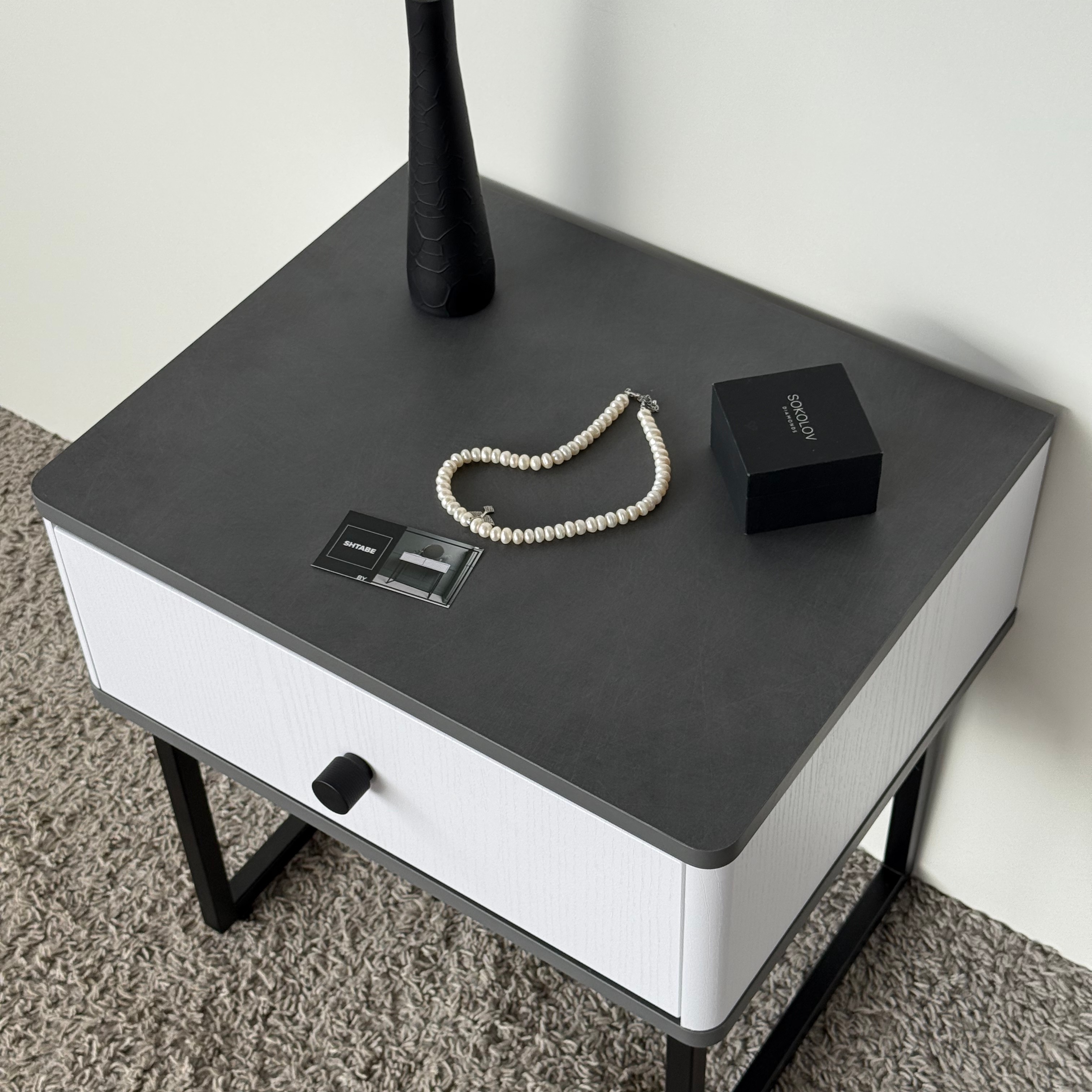 Тумба прикроватная на ножках ROYAL 5301 эко (Металл Бруклин-Черный-р.черная) – купить за 292.54 Br | SHTABE