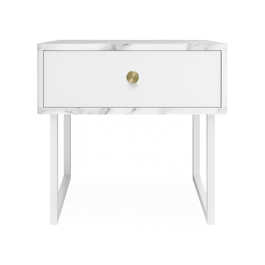 Тумба прикроватная на ножках ROYAL 5301 эко (Мрамор Каррара-Белый-р.золото)