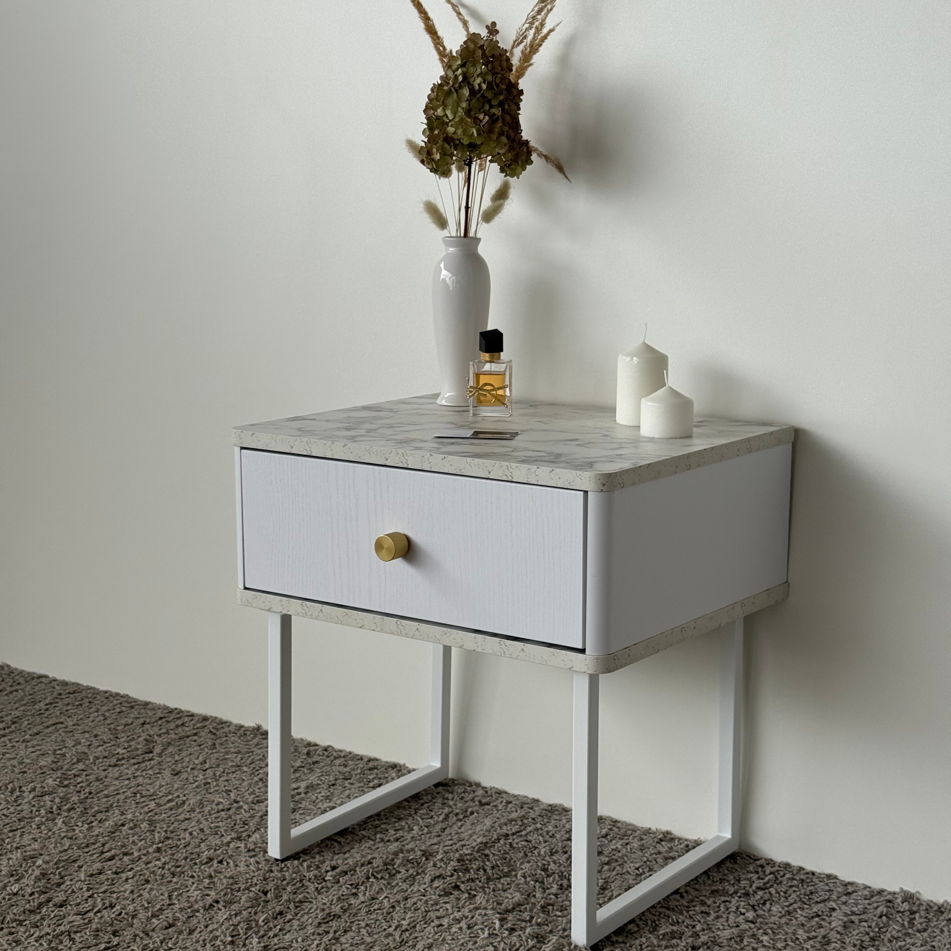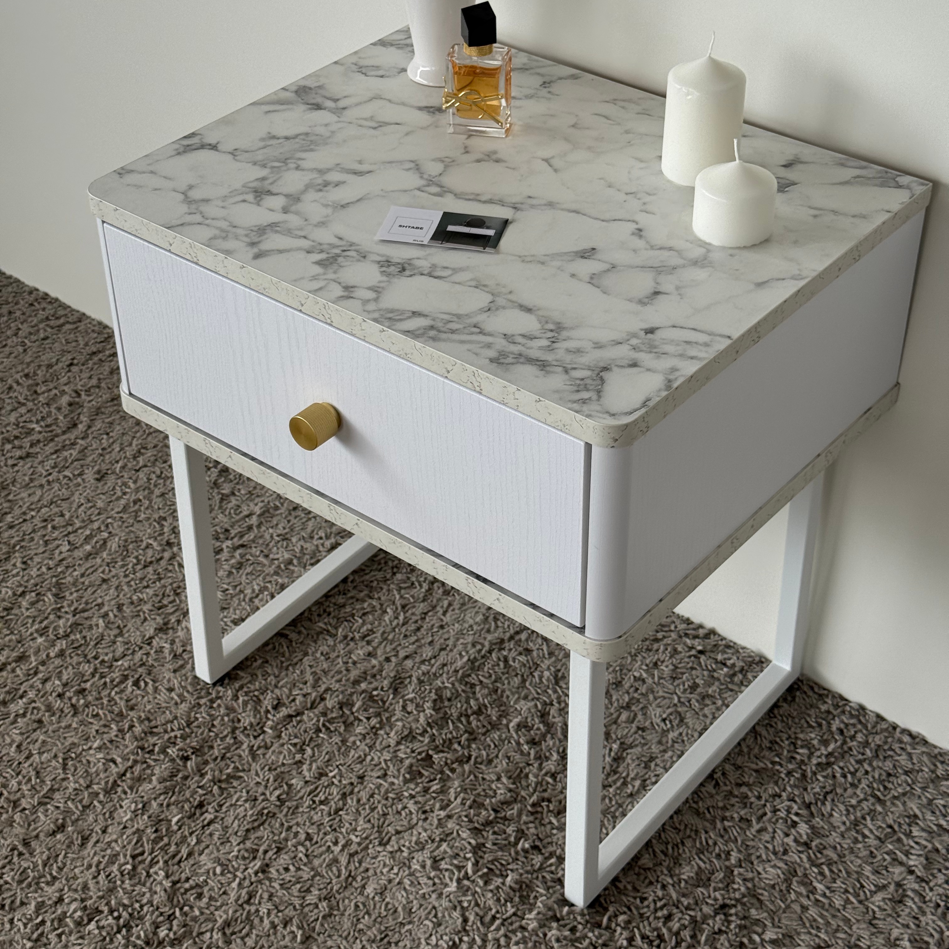 Тумба прикроватная на ножках ROYAL 5301 эко (Мрамор Каррара-Белый-р.золото) – купить за 292.54 Br | SHTABE