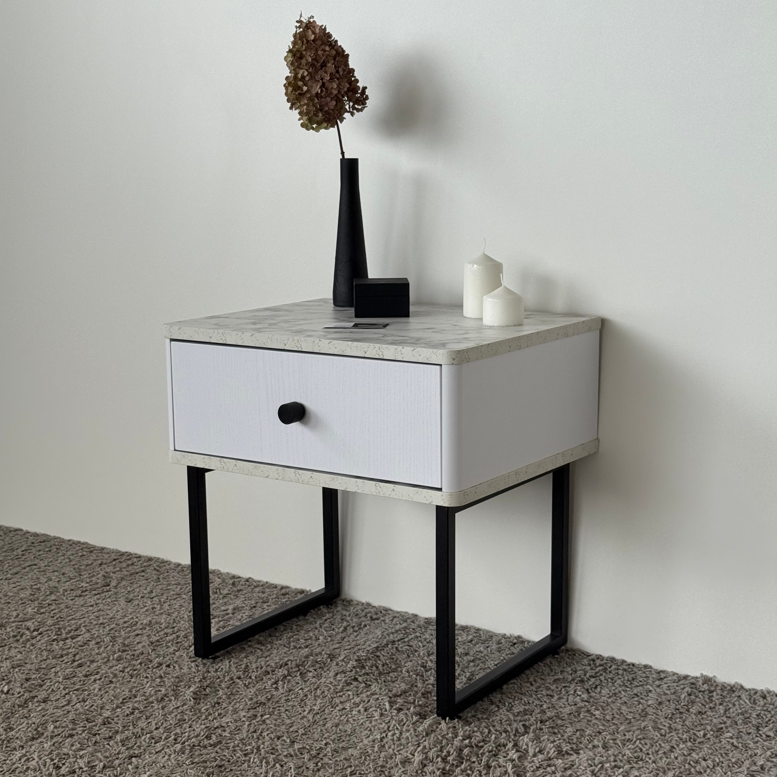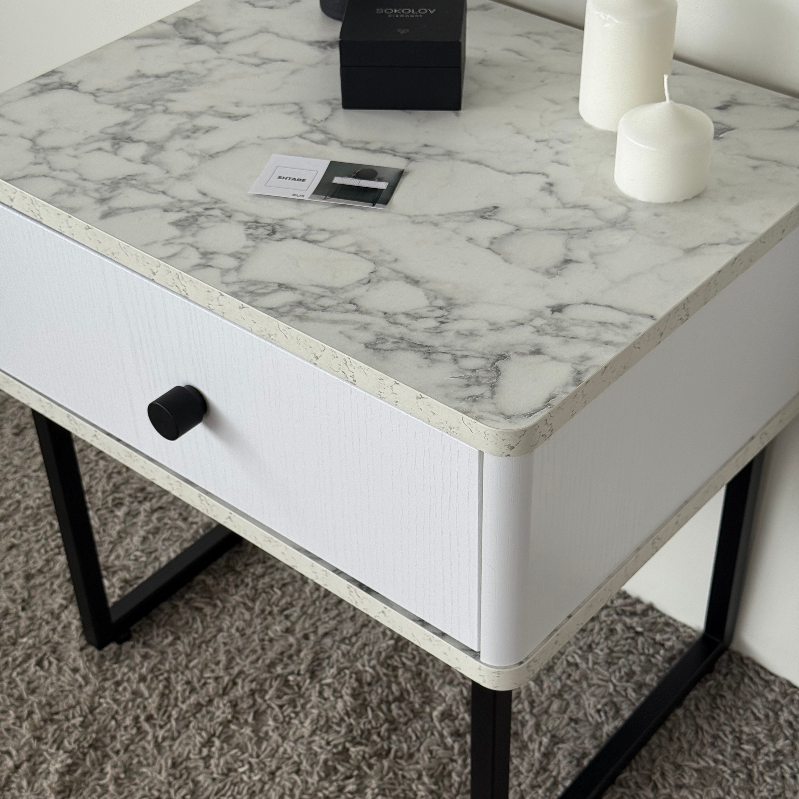 Тумба прикроватная на ножках ROYAL 5301 эко (Мрамор Каррара-Черный-р.черная) – купить за 292.54 Br | SHTABE