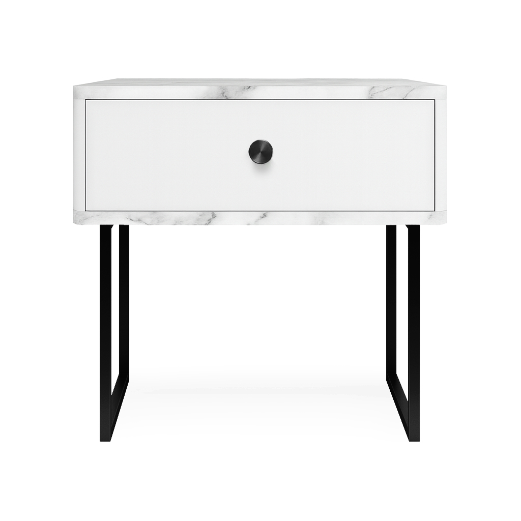 Тумба прикроватная на ножках ROYAL 5301 эко (Мрамор Каррара-Черный-р.черная)
