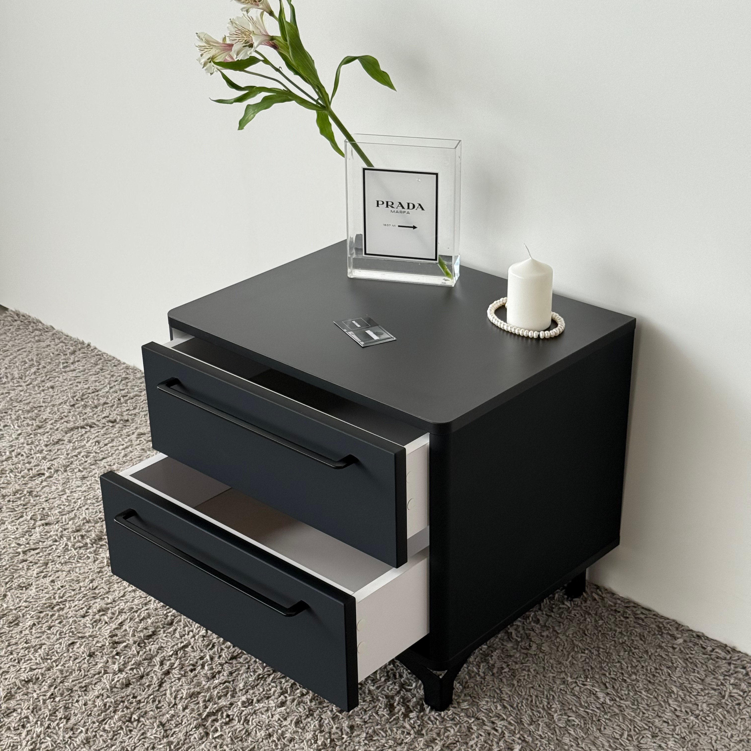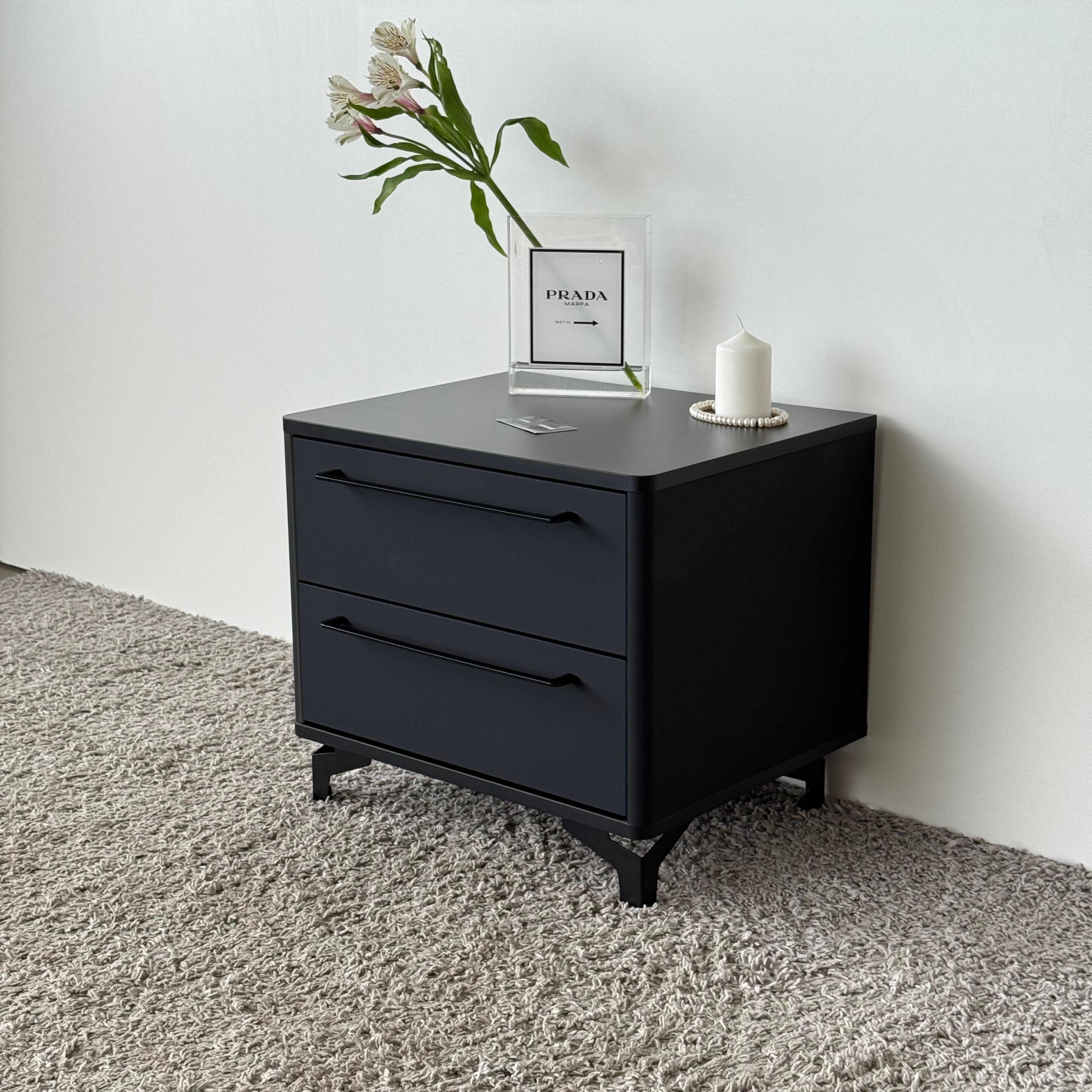 Тумба прикроватная на ножках с ящиками ROYAL 5203 эко (Черный-Черный-р.черная)