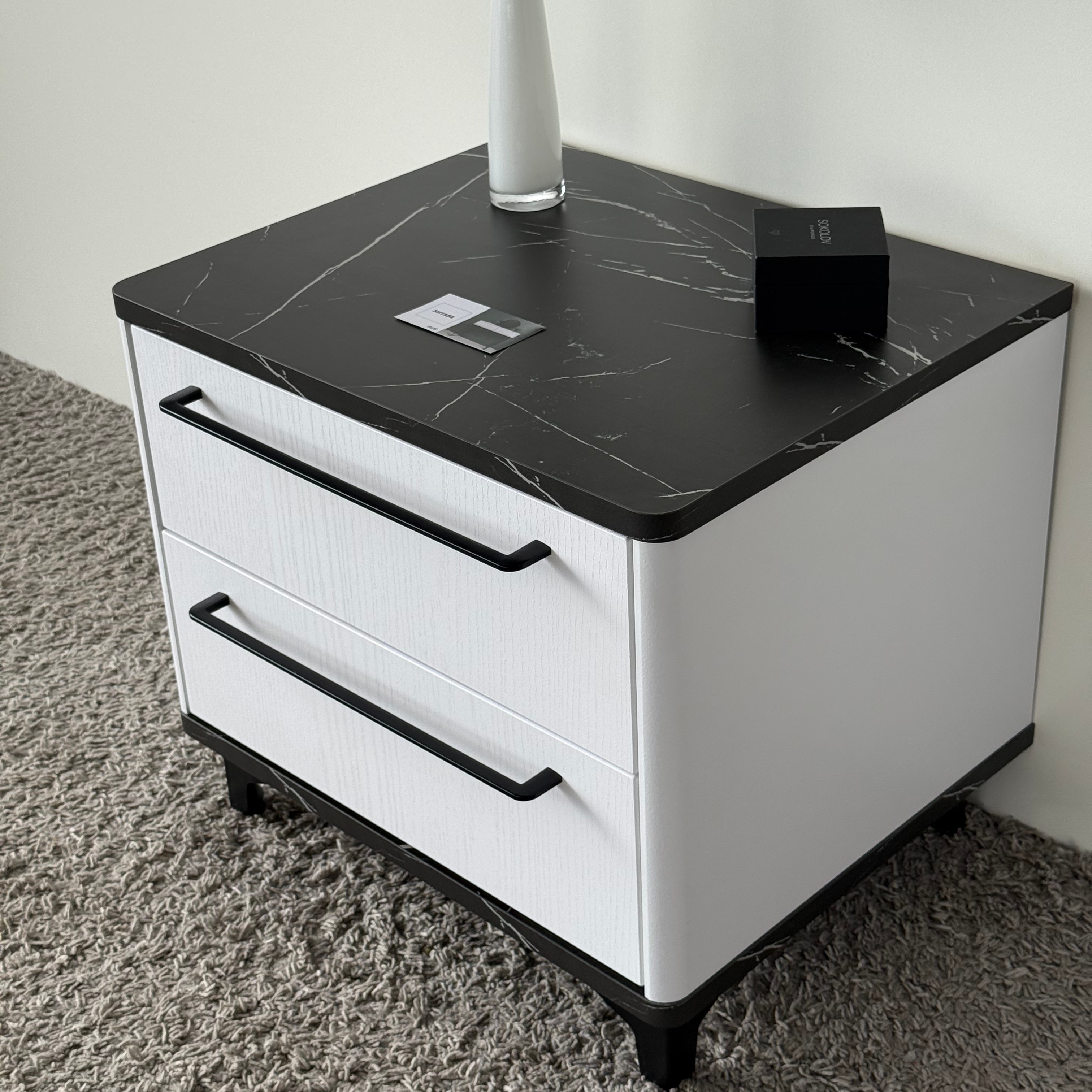 Тумба прикроватная на ножках с ящиками ROYAL 5203 эко (Мрамор Неро-Черный-р.черная) – купить за 418.55 Br | SHTABE