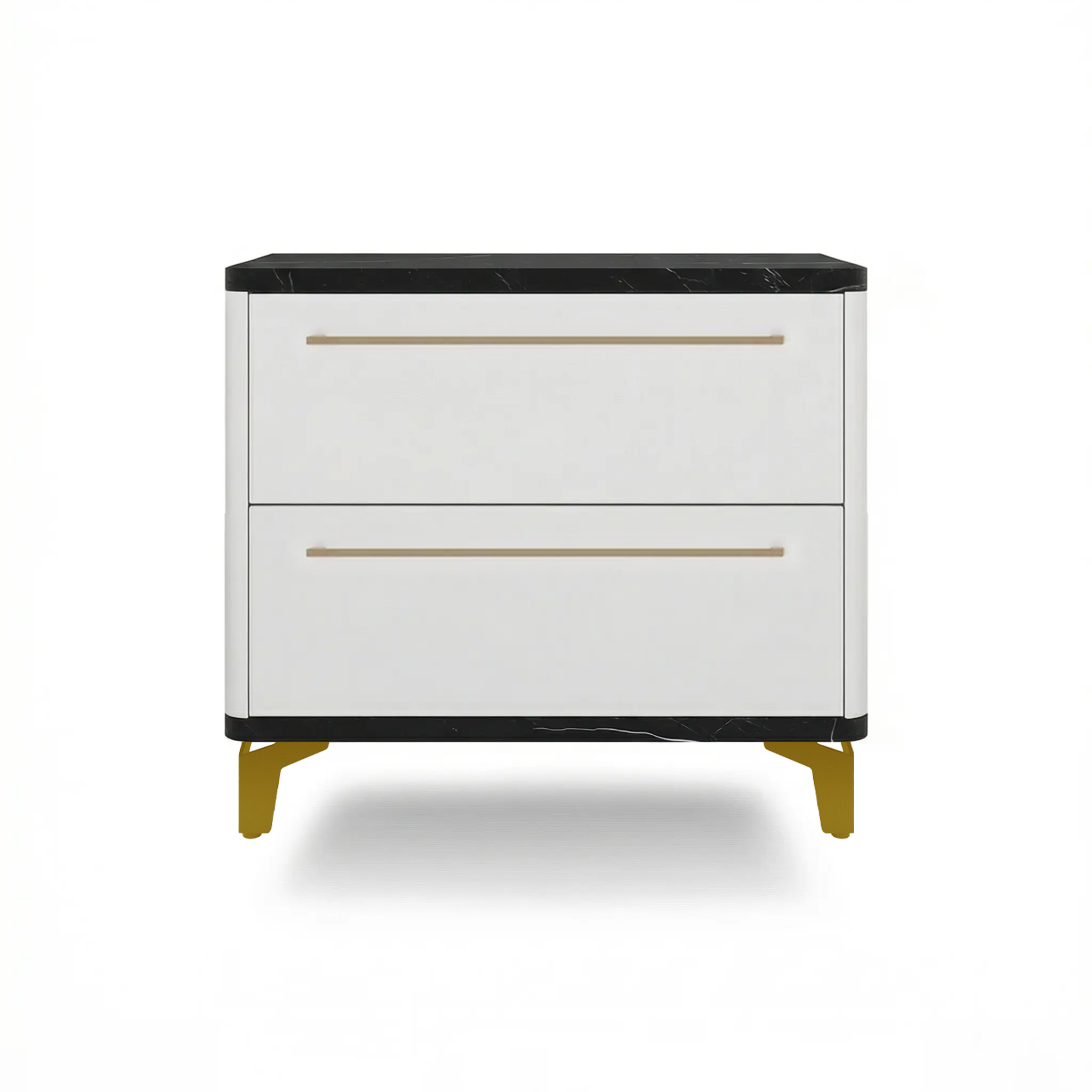 Тумба прикроватная на ножках с ящиками ROYAL 5203 эко (Мрамор Неро-Золото-р.золото)