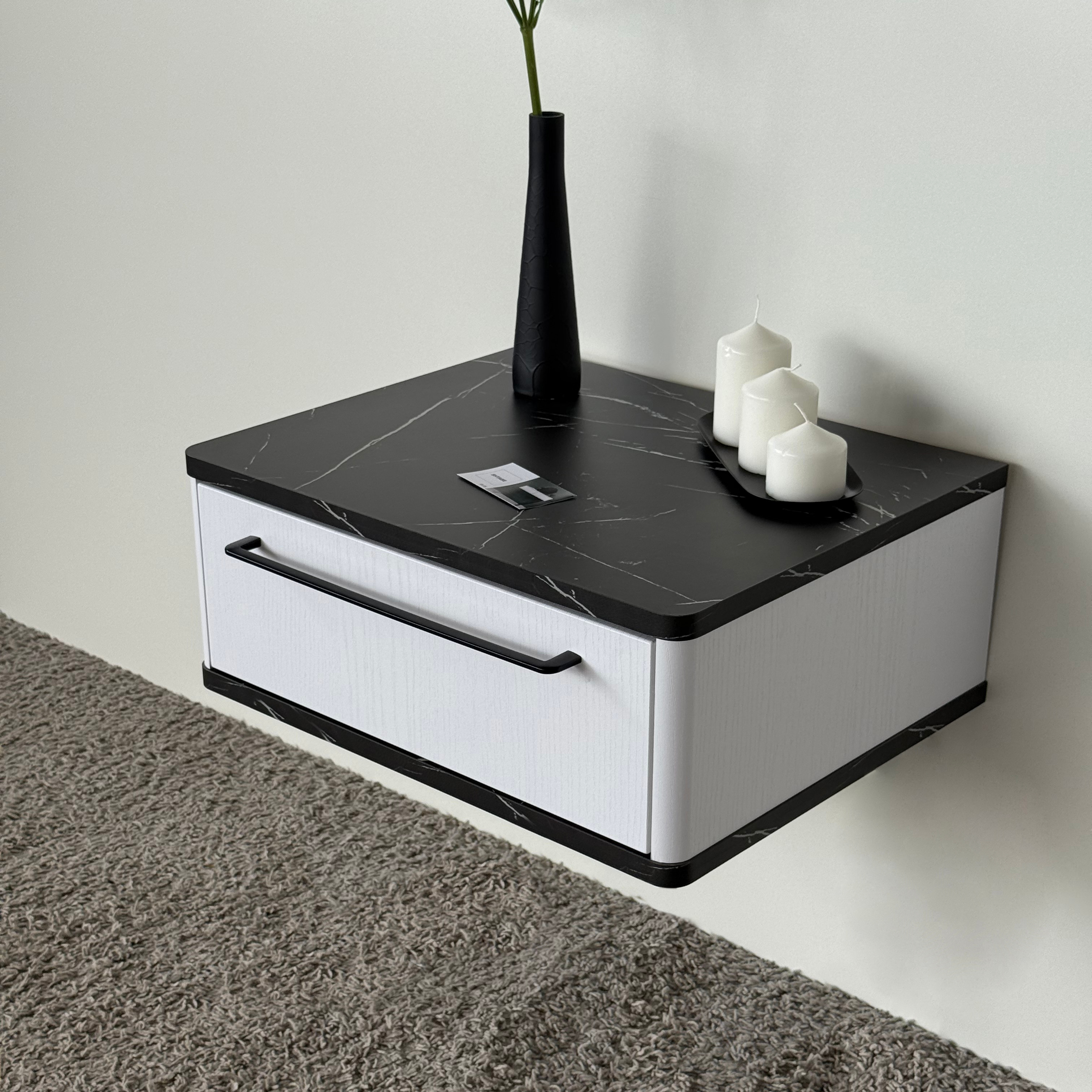 Тумба прикроватная подвесная ROYAL 5200 эко (Мрамор Неро-р.черная) – купить за 221.21 Br | SHTABE